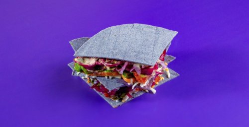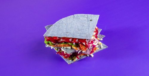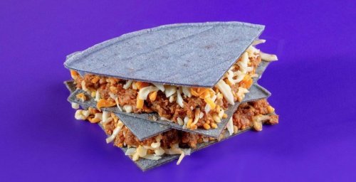 Tortilla di mais, formaggio fuso, nuggets di tofu, guacamole cipolla rossa, cavolo rosso marinato, salsa bbq