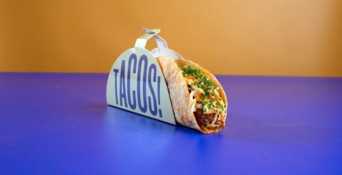 Tortilla di mais, manzo in salsa bordolese, iceberg, purea di fagioli neri, salsa tartara di aji amarillo, fiocchi di cipolla croccante